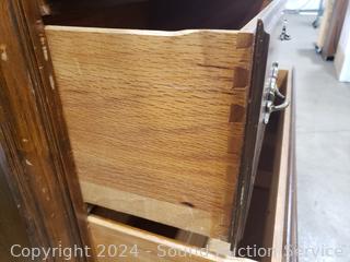 Solid wood construction, dovetail joinery. 55.5" H x 34" W x 18.75" D.