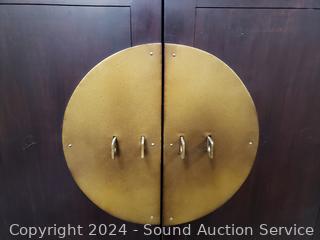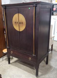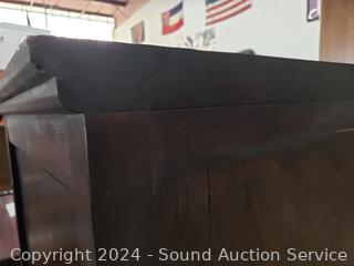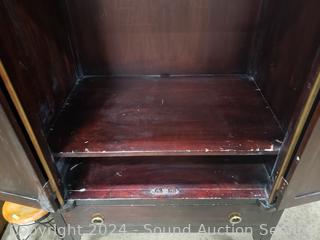 59" H x 37.5" W x 24.5" D. Some scuffs, wear to finish. Overall good condition.
