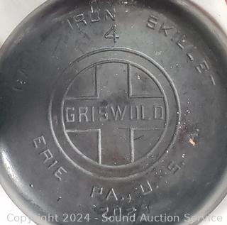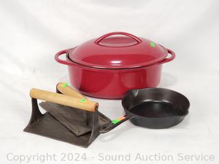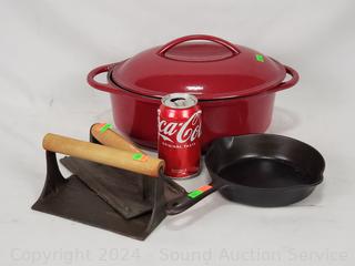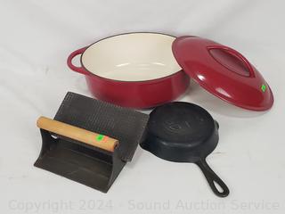 Lot #0157: Well Equipped 11" Cast Iron Roaster, 2 Bacon Presses & Griswold 6" Skillet