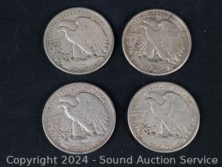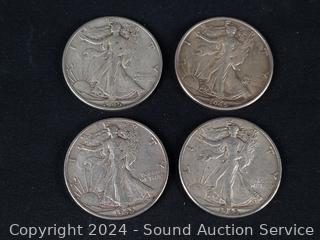 Lot #0085: (4) 1945 US Walking Liberty Silver Half Dollars