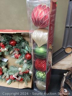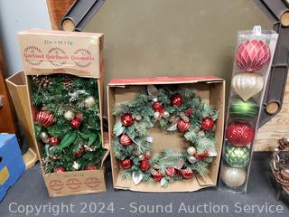Lot #0248: 9ft Garland, (6) 6" Ornaments & 30" Wreathe