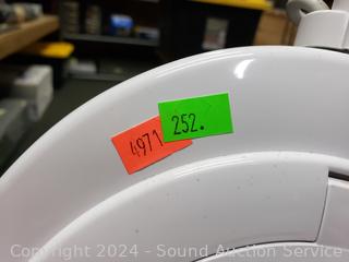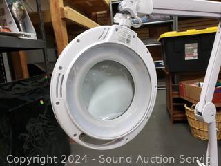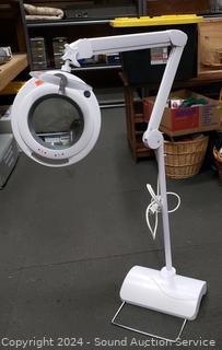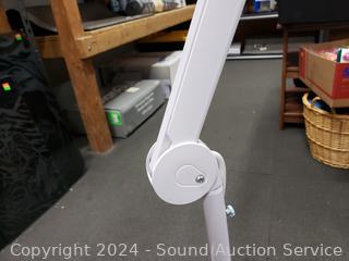 Approx. 44" tall overall, 26" articulating arm. Some small dirty spots.