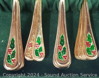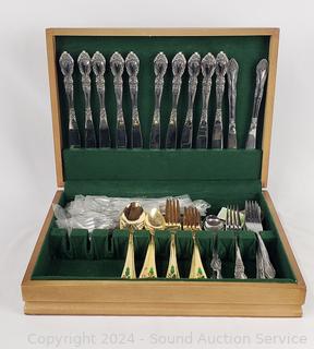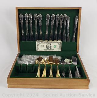 Lot #0180: Cambridge Gold Holy Print & Rogers Stainless Flatware Sets w/Chest