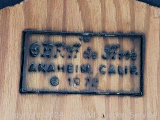 31" x 18". Burnt embossed makers mark on the back c.1977, OERA de Firte Anaheim Calif.