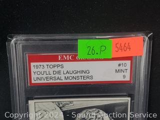 Lot #0026P: Graded Mint-9 1973 Topps You'll Die Laughing Universal Monsters #10