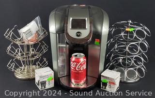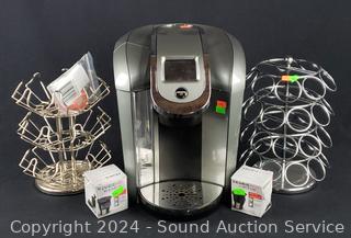 Lot #0146: Keurig 2.0 Coffee Maker w/2 Carousel Racks & 2 Replacement Filters