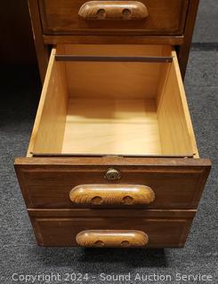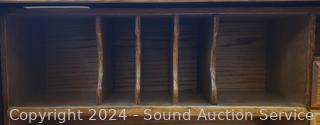 Various scuffs scratches, where you sit. Locking with 2 keys. 45" H x 36" W x 24" D.
