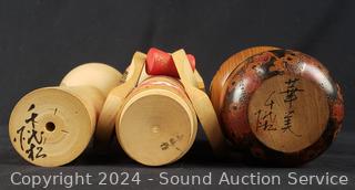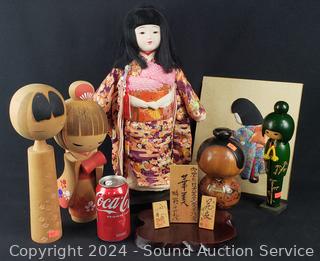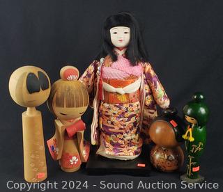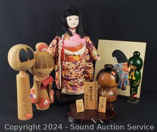 Lot #0061: Porcelain Geisha, Japanese Wood Kokeski Dolls