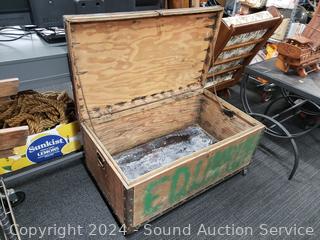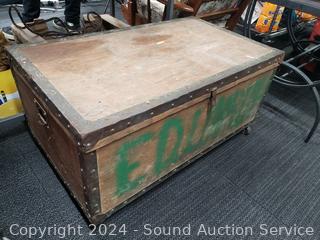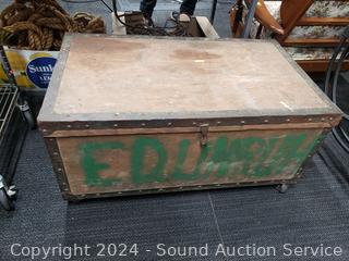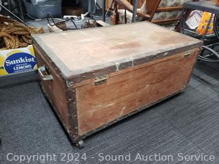 Lot #0049: Wood Steel Framed Chest w/Casters