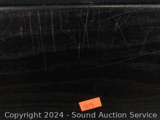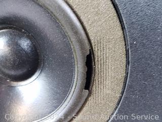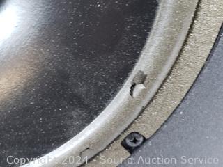 Both the main speaker surrounds are deteriorating. I barely touch the surround and put a hole in it, need replaced/repaired. Otherwise great condition, work. 21" H x 9.75" x 11.5" D.