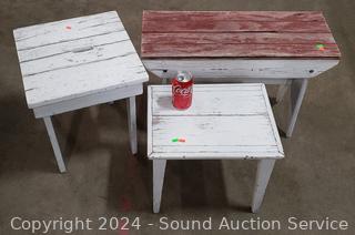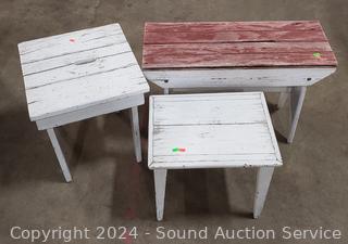 13" H x 12" x 14.5", 17" H x 15" x 15.5" & 17" H x 26" x 10.5". Some weathering, wear to finish.