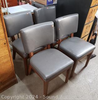 Lot #0102: 4 Cost Plus Gray Vinyl Accent Chairs