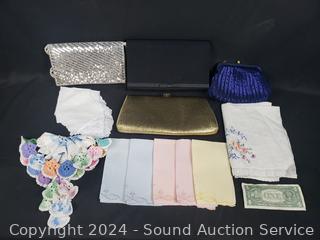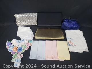 Lot #0113: 4 Ladies Clutches, Napkins/Linens