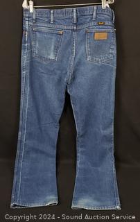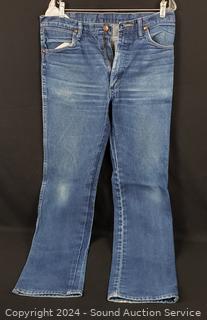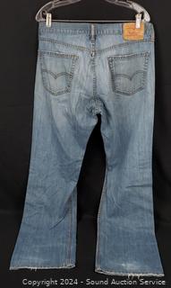 California Trends S:8, For All Man Kind S:7, Levi 517 S:33W/30L, Levi 501 30W/32L, Levi 550 34W/34L, Wrangler S:34W/34L, BDG S:29, Wild Fable S:10. All have signs of wear from use.
