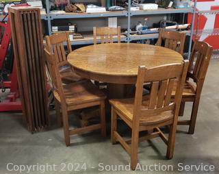 Lot #0037: Antique Oak Quartersawn Oak Dining Table w/6 Chairs & 5 Leaves