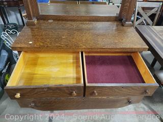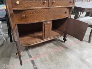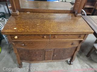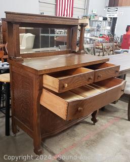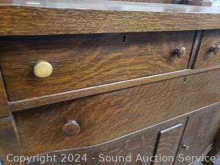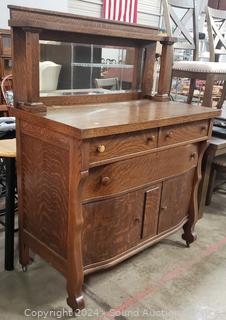 Lot #0002: Antique Quartersawn Oak Beveled Mirrored Sided Board/Buffet
