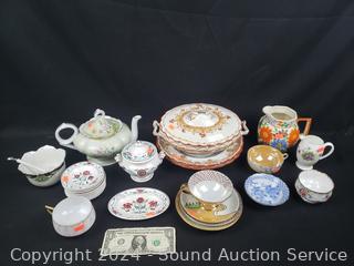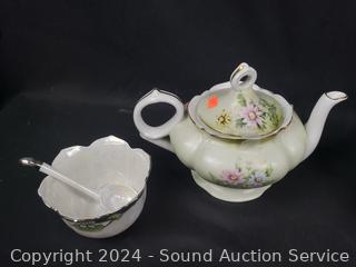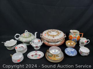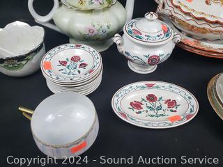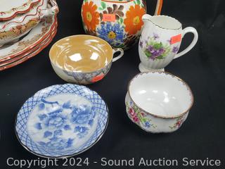 Radfords England, Hubu Cherry China, Hand Made Japan, England & Others. Cream, Sugars, Cups, Saucers, Covered Server, Teapot, Plates, etc. Refer to photos for more details.