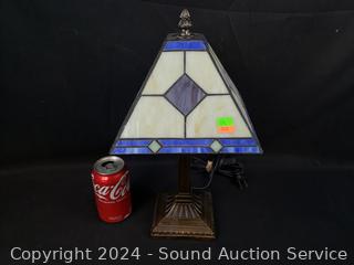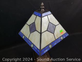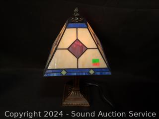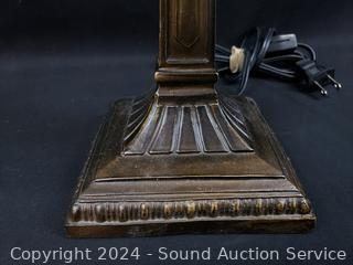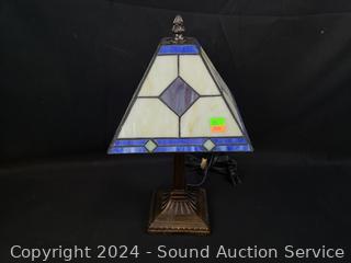 Lot #0129: Bronze Finish Stained-Glass Shade 15" Table Lamp