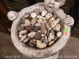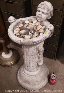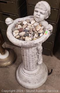 Lot #0016: Concrete Birdbath/Fountain? Sculpture Full of Stones