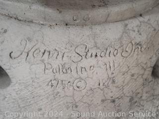 30' H x 13" Dia. Some weathering wear. Embossed makers mark on the bottom Henri Studio Inc. 1975. See a drain hose coming out the bottom.