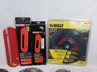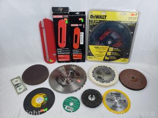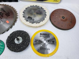 Lot #0195: Craftsman Table Saw Inserts, Circular Saw Blades, Buffing Pads
