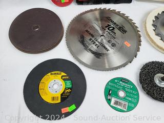 8" buffing pads, 10" to 12" circular saw blades. Refer to photos for more details.