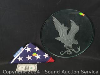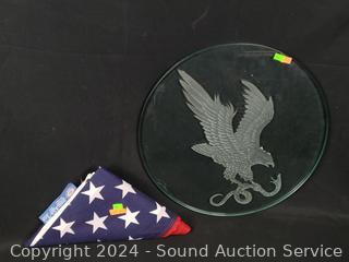 Lot #0226: Cut Glass Eagle Slab & 32" x 60" American Flag
