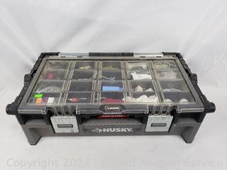 Lot #0161: Husky Hardware Organizer Toolbox w/Various Hardware