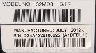 Model 32MD311B/F7. Appears to be functioning as intended. No remote.