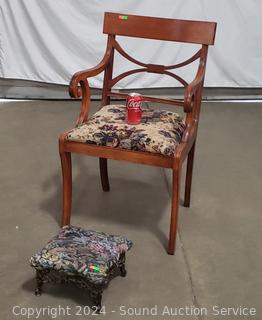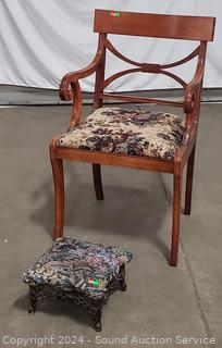 Lot #0097: Vtg. Mahogany Accent Armchair & Foot Stool