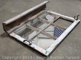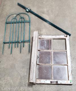 Lot #0295: Vtg. Window Frame Mirrored Shelf, 4 Fence Posts, 4 Garden Fence Sections
