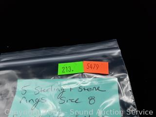 Lot #0213: 5 Sterling & Stone Rings S:8