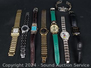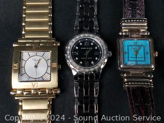 Kessaris, Issac Mizrahi Live, St. Marin, Ecclissi, Mickey Mouse, Anne Klein, Steel by Design and Seiko. All appear to need new batteries, not currently running.