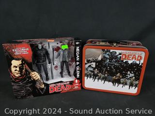 Lot #0094: 8 The Walking Dead Action Figures & Lunch Pail
