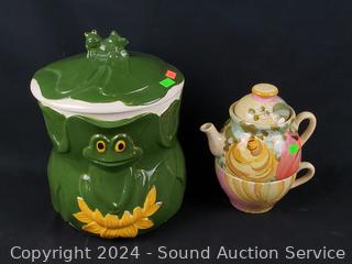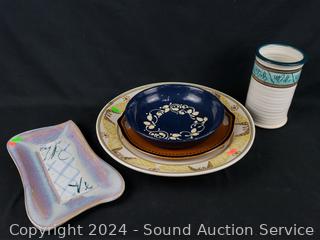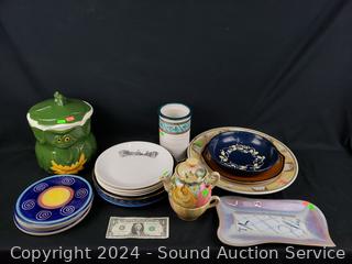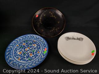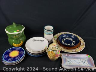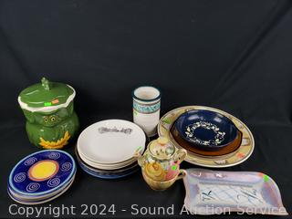 Plates, canister, teapot, charger, platter. Refer to photos for more details.