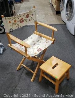 Lot #0020: Folding Directors Chair & Wood Step Stool