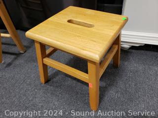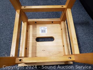 36" H x 22.5" W x 19" to seat chair, 12" H x 12" x 12" step stool. Various scuffs, wear to finish.