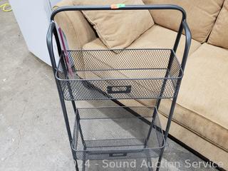 Lot #0035: Gray Steel 3-Tier Basket Shelving Unit