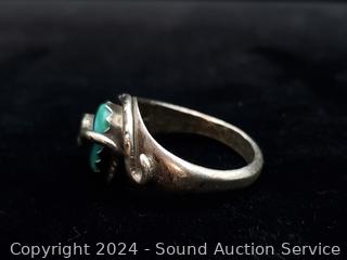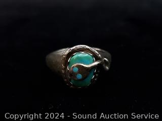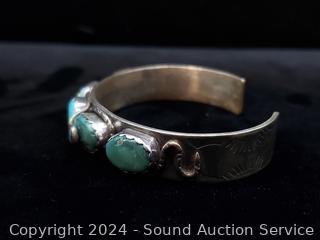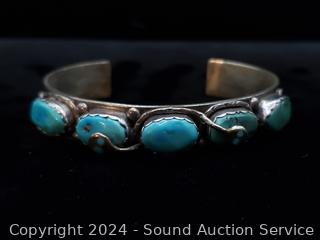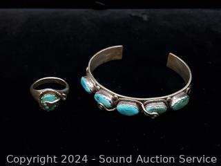 Lot #0192: Signed Effie Calavaza Zuni Native Sterling & Turquoise Cuff Bracelet w/Matching Ring