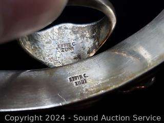 Bracelet 2.5" Dia., ring S:9.5. Signed Effie C. Zuni, both unmarked, tested silver. TW:38.14g.