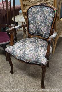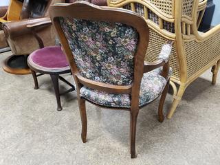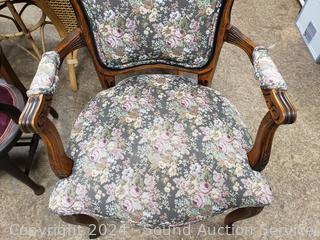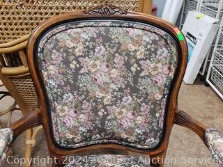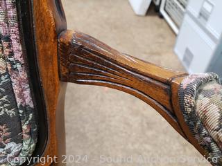 Lot #0293: Vtg. Mahogany Floral Tapestry Upholstery Armchair
