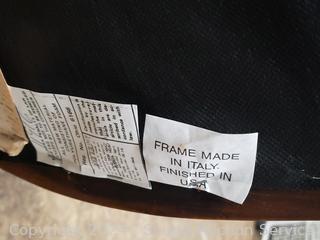 37" H x 22.5" W x 18" to seat. Has a tag in the bottom, "Frame made in Italy". Don't see any major issues.