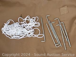Frame bent on one side, 1 clip for pole cover is missing. Some dirty spots.