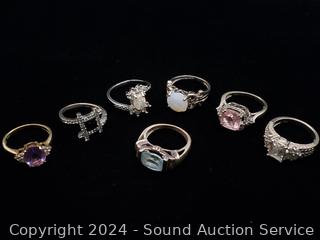 Lot #0264: 7 Sterling & Stone Set Rings S:6.5/7/7.5