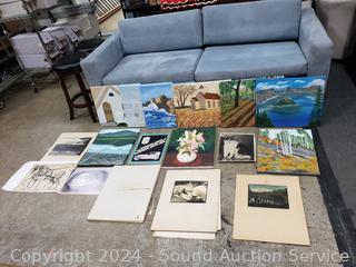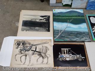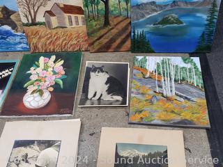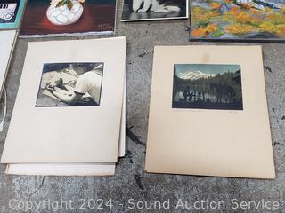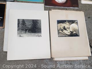 Lot #0287: Assorted Unframed Artwork, Photos, Etchings