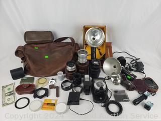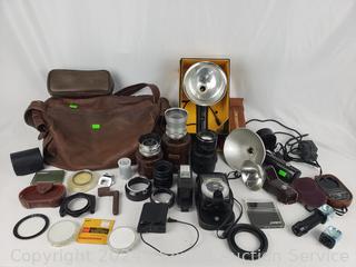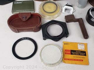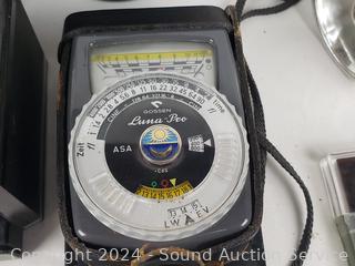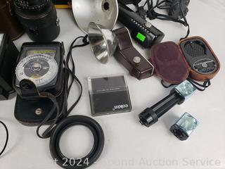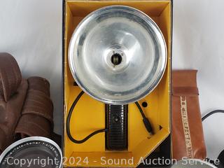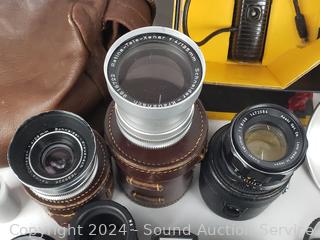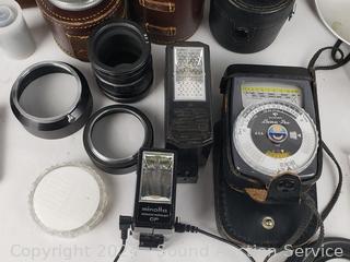 Retina-Tele-Xener f:4/135mm lens, Kodak flashholder, Gossen Luna Pro light meter, Weston light meter, Minolta flash, Asahi Super-Takumar 1:1.8/55 lens & more. Refer to photos for more details.
