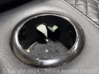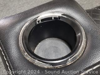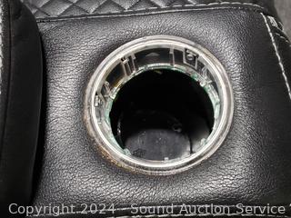 Works. All cup holders have damage/issues, some wear to the material. 42" x 74" x 35", 18" to seat.