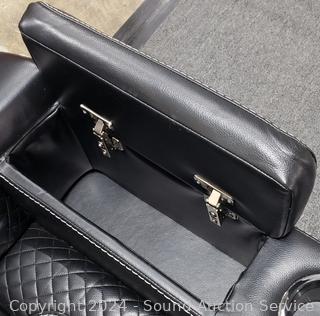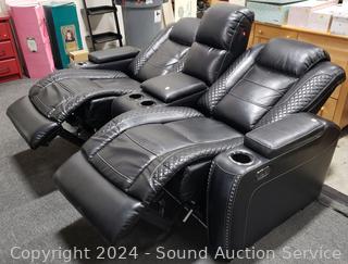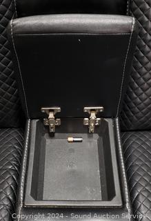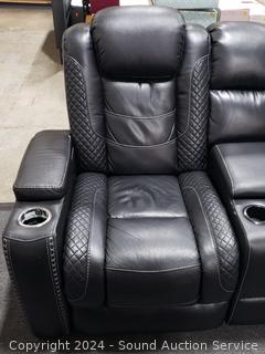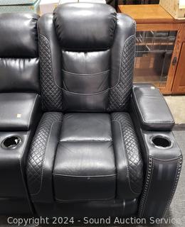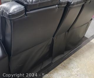 Lot #0005S:     Black Faux Leather Power Reclining Sofa