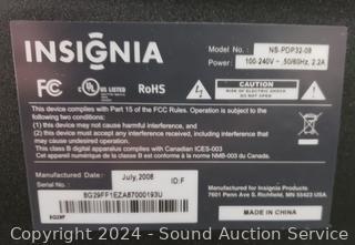 Lot #0203: Insignia 32" 720p Flat Panel Plasma HDTV w/Remote