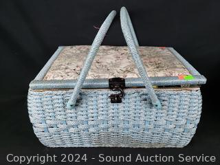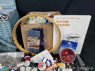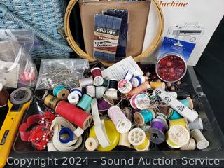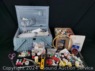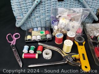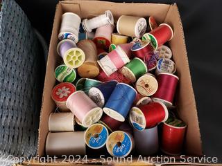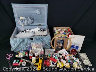 Lot #0286: Sewing Basket Full of Sewing Supplies & Box of Thread